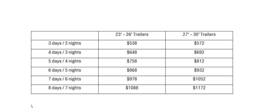 * 2 night minimum on all Travel Trailer Rentals
